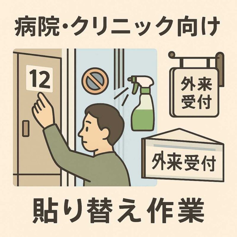 病院・クリニックは、表示物の“貼り替え頻度”と“衛生管理”がもっとも厳しい現場です。