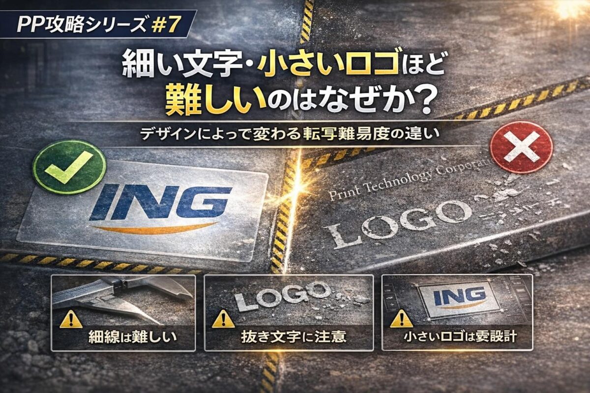 「大きなロゴは問題ないのに、細い文字だけ剥がれる」